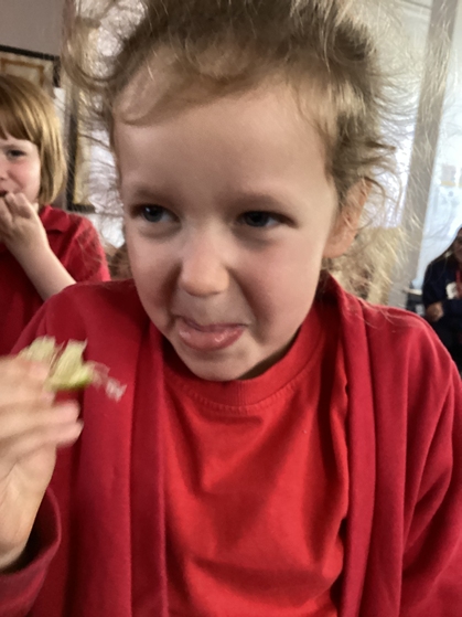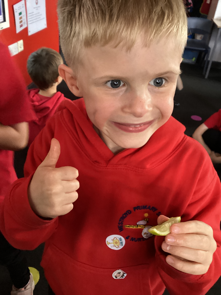 In Science, we explored the sense of taste. We all tasted a variety of foods, from limes to salted crisps and identified what they were; sour, sweet, salty or bitter.