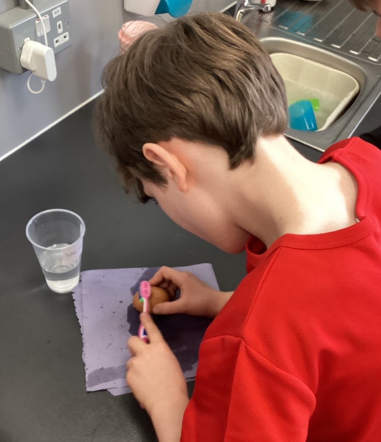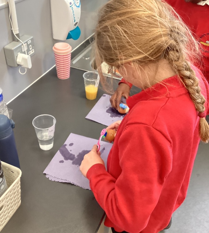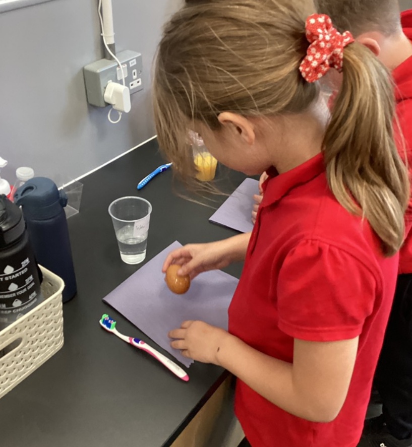 Our Science lessons were particularly exciting! We carried out an experiment to explore how different liquids affect teeth — using eggshells to represent them. We tested water (our control), orange juice, cola, and vinegar. After just two days, we were amazed to see how much the shells had changed in some of the liquids! We even tried brushing them clean — with some more success than others!